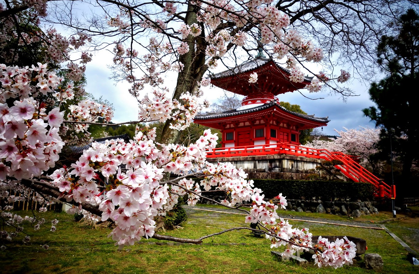 Xuân về, những sắc trắng, sắc hồng tinh khôi của cánh hoa anh đào đằm thắm nở rộ lẫn khuất trong những ngôi đền chùa trầm mặc, cổ kính nơi cố đô Kyoto tạo cho du khách một cảm giác vừa yên bình vừa thoát tục. Có thể nói một vẻ đẹp huyền bí không thể diễn đạt bằng lời.