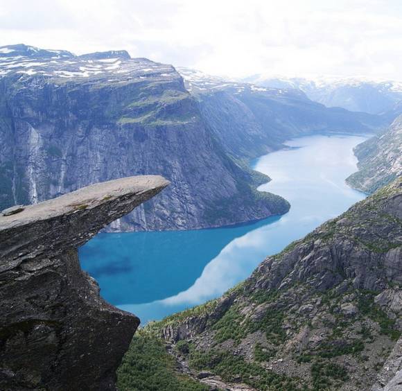 Trolltunga là một trong những vách đá đẹp và đặc biệt nhất Na Uy. Nó còn được biết đến với tên gọi Lưỡi Quỷ, bởi hình dáng giống một chiếc lưỡi khổng lồ nhô ra từ vách đá liếm lên bầu trời xanh cùng khung cảnh hùng vĩ phía dưới.