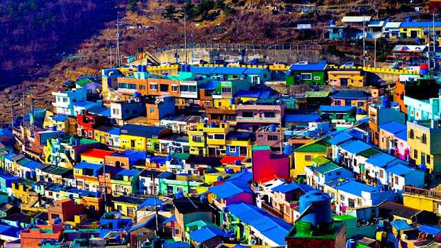 Những du khách lần đầu tới đây sẽ mau chóng bị thu hút bởi những căn nhà màu pastel và những bức tượng gợi trí tò mò được đặt khắp thị trấn. Thế nhưng, mặt tiền kì lạ và các tác phẩm nghệ thuật hiện đại mới chỉ cho thấy một phần nào câu chuyện thú vị ẩn đằng sau thị trấn mê cung nằm dưới ngọn đồi ở Busan, với tên gọi làng Gamcheon.