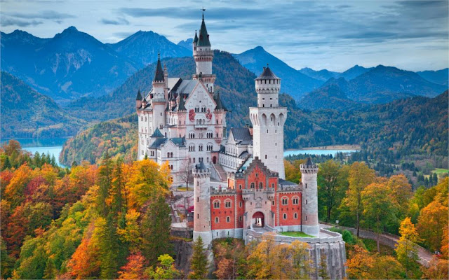 Mùa thu tại miền Nam nước Đức là sự hòa phối hài hòa giữa sắc màu rực rỡ của lá phong trên nền xanh thẳm của những ngọn núi cao chót vót. Đến đây, bạn không chỉ thưởng lãm bức tranh thiên nhiên tuyệt đẹp mà còn được tham gia vào lễ hội rượu vang tổ chức trong thị trấn. Và chớ quên ghé thăm lâu đài Neuschwanstein để chiêm ngưỡng vẻ tráng lệ được bao phủ bởi những hàng cây chuyển sang sắc vàng và đỏ.