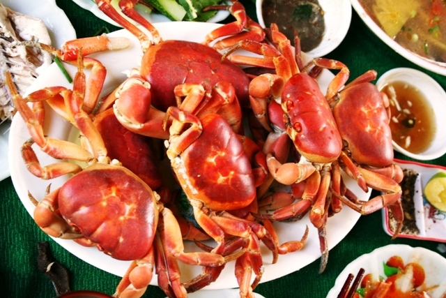 Hải sản ở đây vừa được đánh bắt từ biển lên và đưa vào bờ nên rất tươi, rẻ và những người bán sẵn sàng chế biến luôn cho bạn thưởng thức. Còn nếu muốn ăn nhà hàng thì đến Bãi Ông và Bãi Làng, nhưng giá sẽ cao hơn.