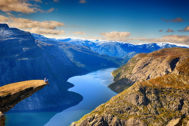 Trolltunga là một trong những vách đá đẹp và đặc biệt nhất Na Uy. Nó còn được biết đến với tên gọi Lưỡi Quỷ, bởi hình dáng giống một chiếc lưỡi khổng lồ nhô ra từ vách đá liếm lên bầu trời xanh cùng khung cảnh hùng vĩ phía dưới.