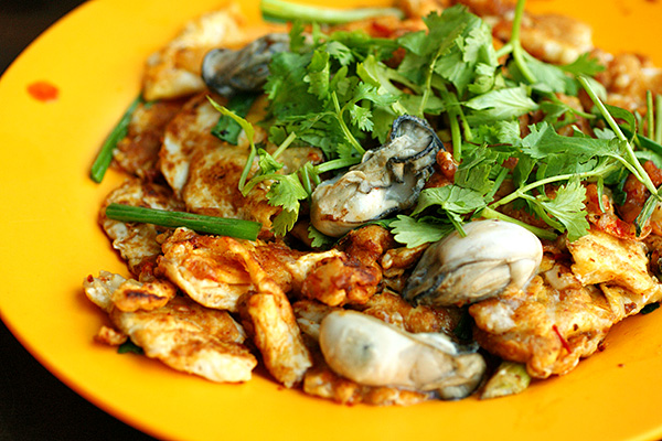 Oyster Omelette có nguồn gốc từ Đài Loan nhưng nó đã trở thành món ăn nhanh tiện lợi ở Malaysia và các nước châu Á khác. Tinh bột khoai tây nhào cùng bột làm bánh và trứng tạo nên món trứng tráng có kết cấu dày hơn và nấu chín cùng với một phần lớn hàu mọng nước. Lớp vỏ được nướng chín có màu nâu vàng và phần bên trong mềm mịn.