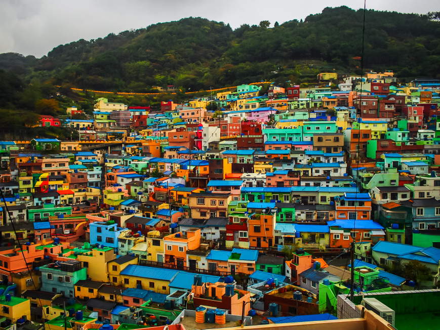 Những du khách lần đầu tới đây sẽ mau chóng bị thu hút bởi những căn nhà màu pastel và những bức tượng gợi trí tò mò được đặt khắp thị trấn. Thế nhưng, mặt tiền kì lạ và các tác phẩm nghệ thuật hiện đại mới chỉ cho thấy một phần nào câu chuyện thú vị ẩn đằng sau thị trấn mê cung nằm dưới ngọn đồi ở Busan, với tên gọi làng Gamcheon.